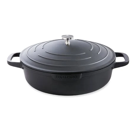 Cocotte Légère Basse Ronde En Fonte D’aluminium 28 Cm 4,1 L Coloris Noir