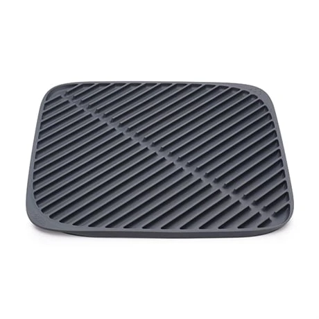 Le tapis égouttoir pliable Gris en silicone de 31 cm, offre une surface en caoutchouc flexible supplémentaire pour égoutter tasses, verres et bols lorsque l’évier est plein.