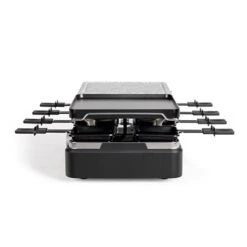 CrĂ©ez une ambiance vacances aux sports d’hiver avec cet appareil Ă raclette 8 personnes 1400 W muni de 8 caquelons et 8 spatules bois. Bien stable grâce Ă ses pieds antidĂ©rapants, cet appareil est idĂ©al pour une soirĂ©e dĂ©contractĂ©e entre amis et très pratique grâce Ă ses deux plateaux de 23 cm x 21 cm en pierre fonte d’aluminium antiadhĂ©sive.