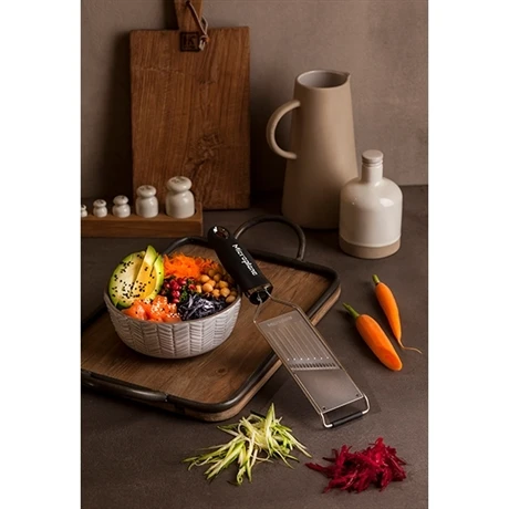 Faites vos juliennes de légumes avec un ustensile manuel simple et rapide à utiliser : la mandoline à julienne Gourmet Microplane fait partie de la nouvelle gamme d’outils spécialisés de Microplane, qui profitent de ses lames en acier inoxydable ultra-affûtées réputées dans le monde entier. Coupant toutes les textures sans efforts, vous pourrez faire vos juliennes en quelques gestes, sans nécessiter un appareil à régler ou électrique qui demanderait plus de temps de mise en place. Choux, courgettes, betteraves ou pommes de terre, vous pourrez autant réaliser des décorations pour vos plats que des juliennes, des petites frites ou des coleslaws.