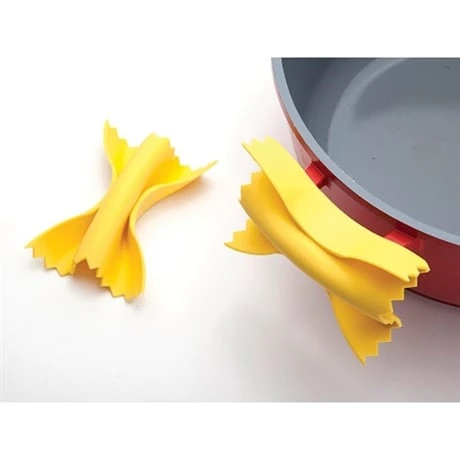 Ce set de 2 maniques Farfalloni va vous permettre de sortir vos plats bouillants du four de la façon la plus simple qu’il soit puisque ce set est constituĂ© de 2 poignĂ©es de doublage en silicone ayant une forme de pâte Farfalloni. Moins encombrantes que vos gants pour four, ces sur-poignĂ©es sont pratiques, et leur design ultra original va rendre vos instants de cuisine encore plus agrĂ©ables.Â